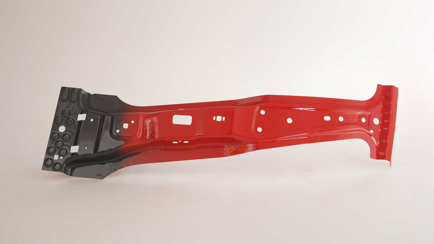Eine warmumgeformte B-Säule eines Fahrzeugs mit tailierter SoftZone produziert von weba Werkzeugbau